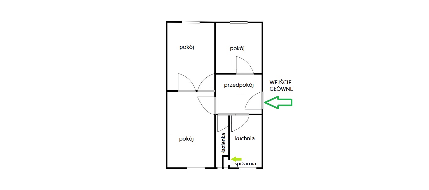 - dwóch dużych pokoi, każdy z nich o powierzchni ok. 18 m2,