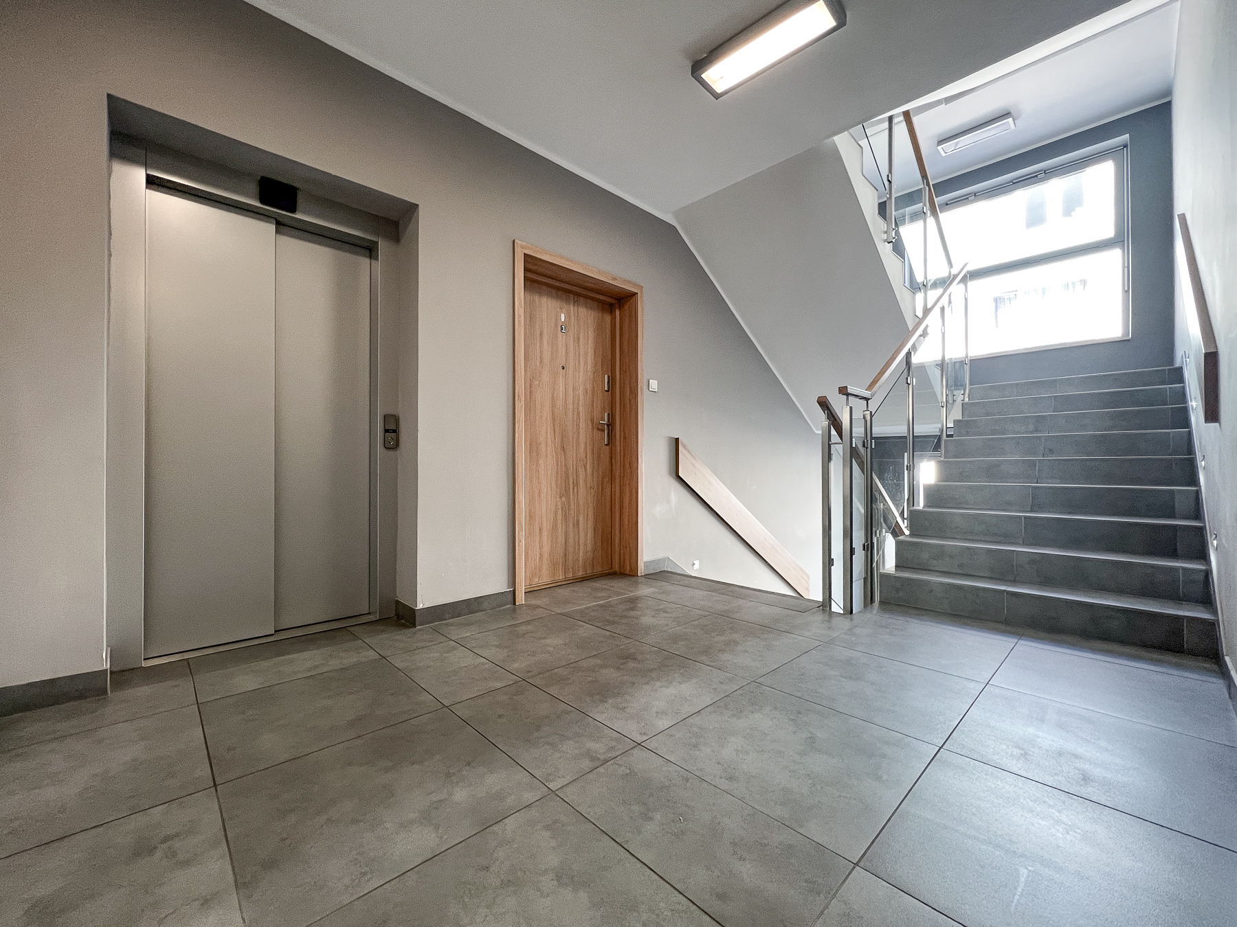 Nowoczesna, monitorowana klatka schodowa z windą, w bardzo dobrym stanie technicznym.