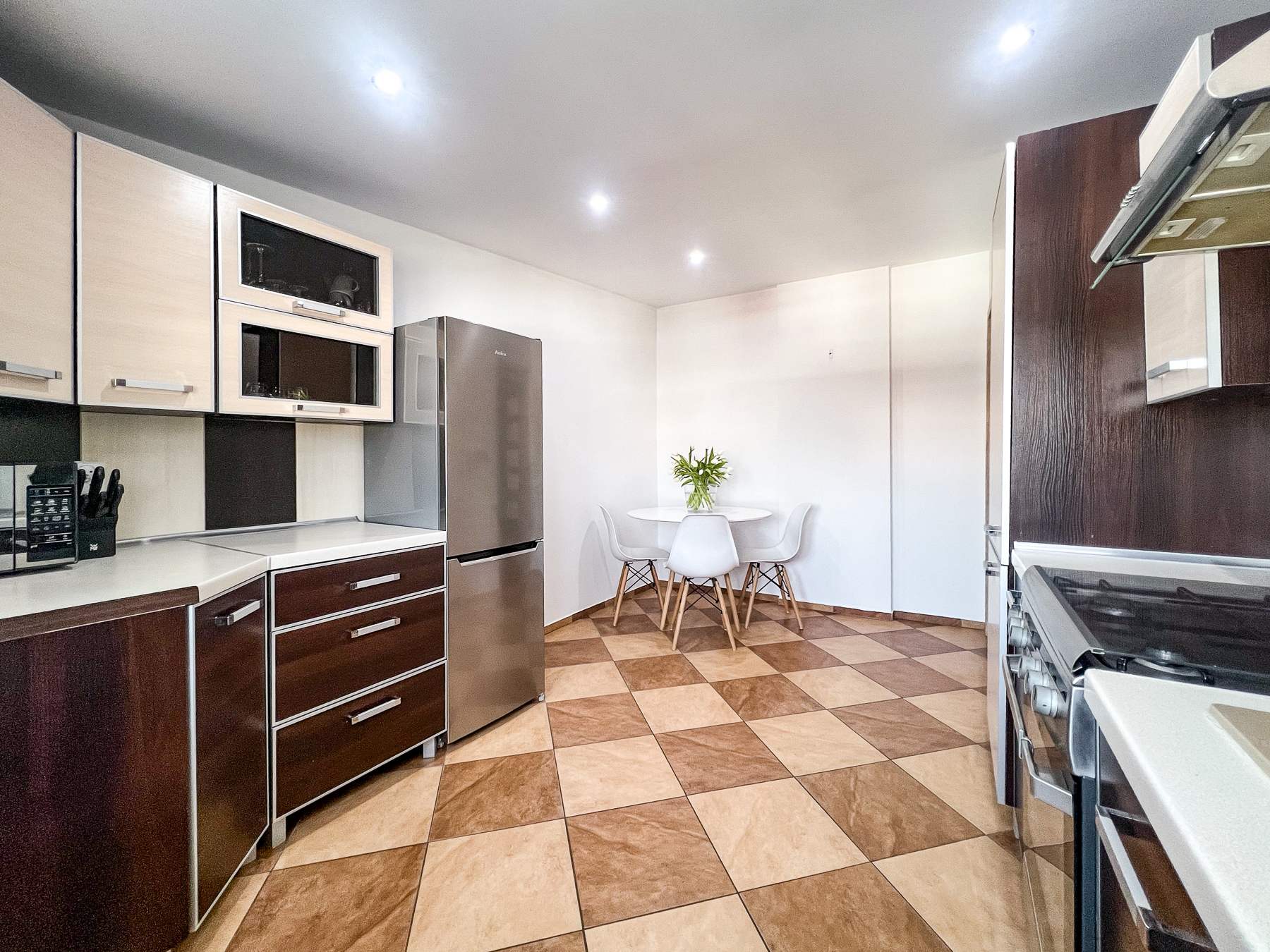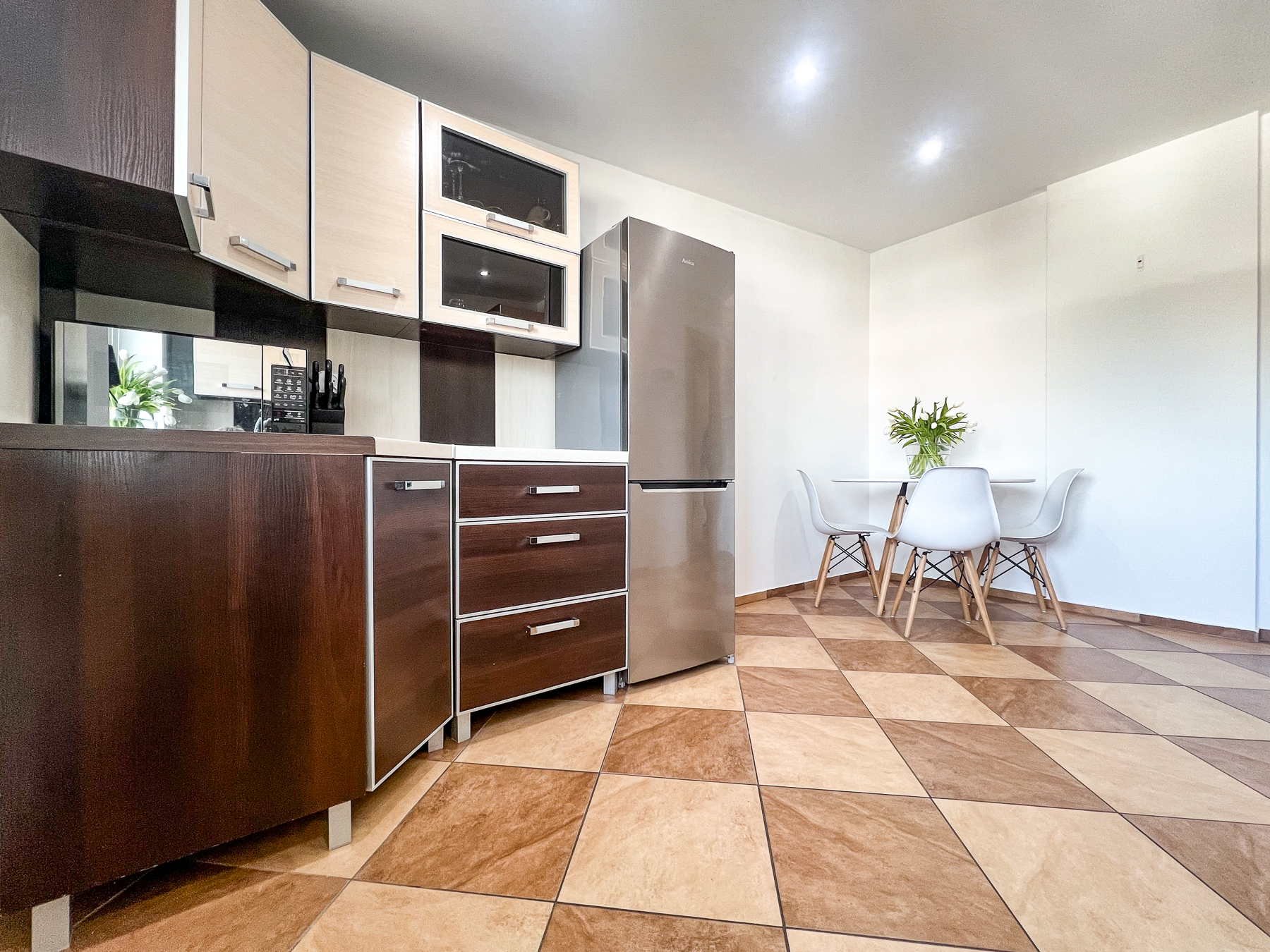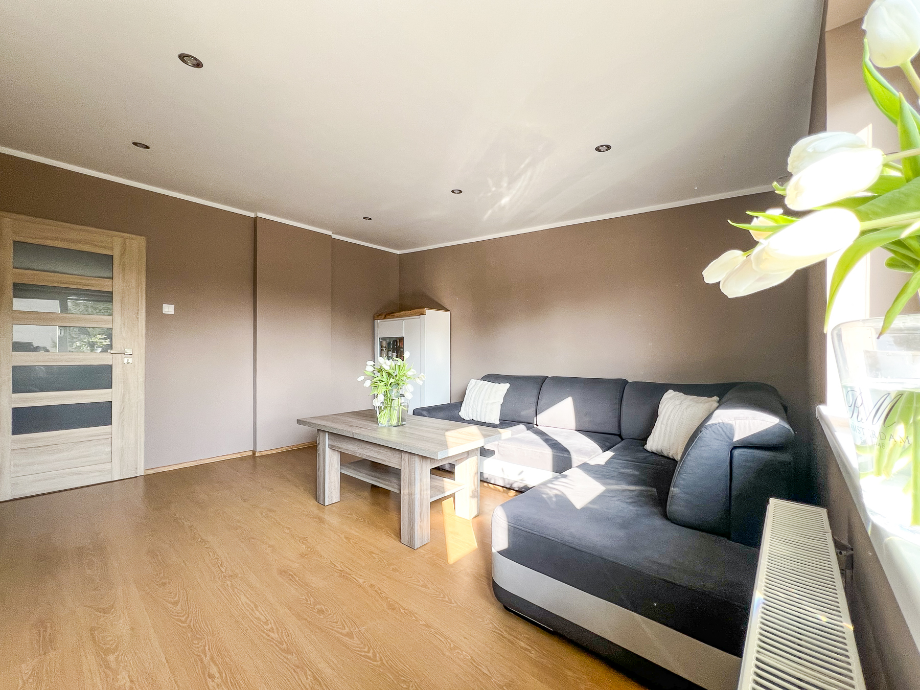 Mieszkanie dwustronne, jasne i zadbane. Wnętrze urządzono ponadczasowo. Do podstawowej ceny należy doliczyć 20.000 zł za przynależne udziały.