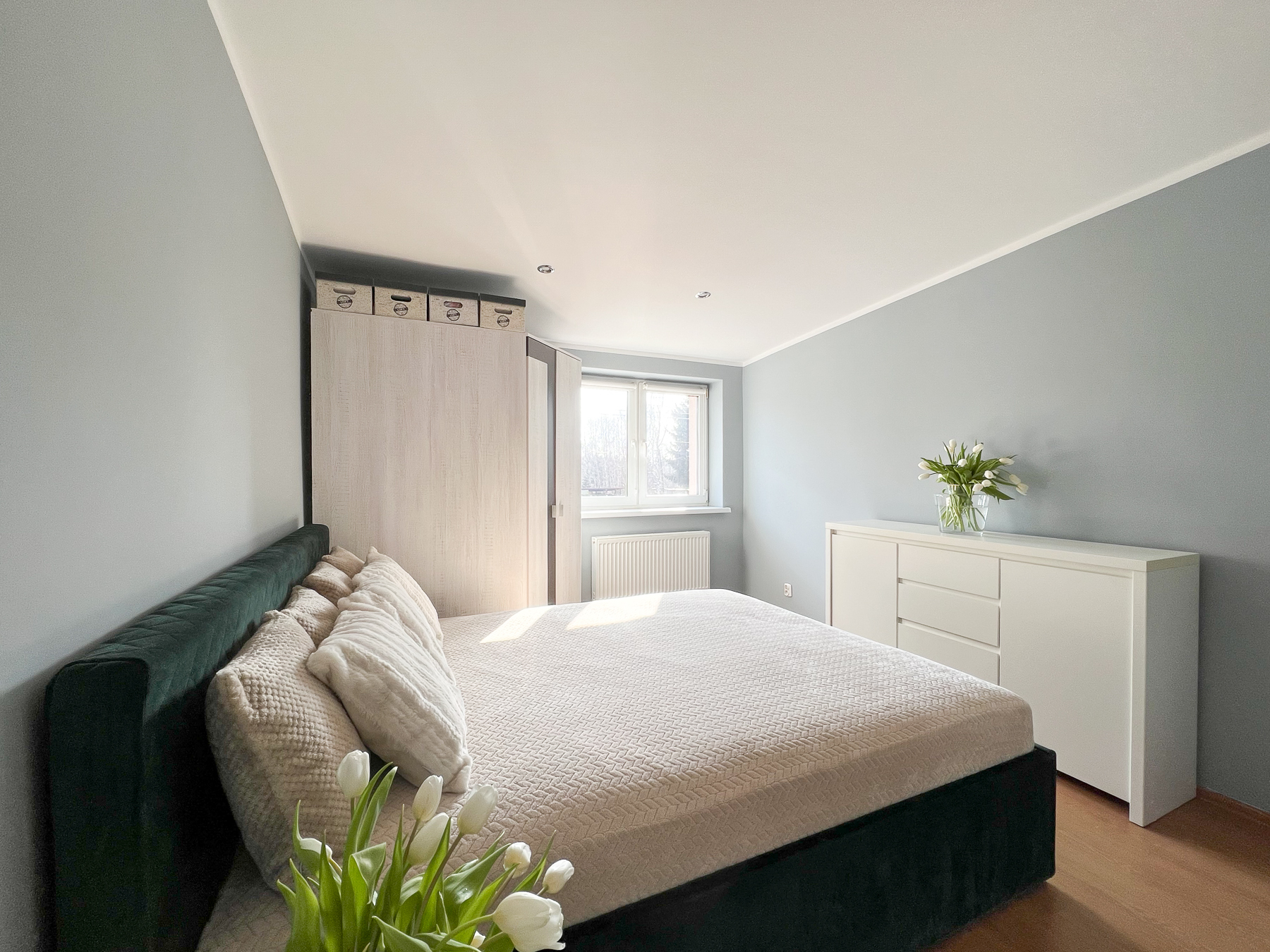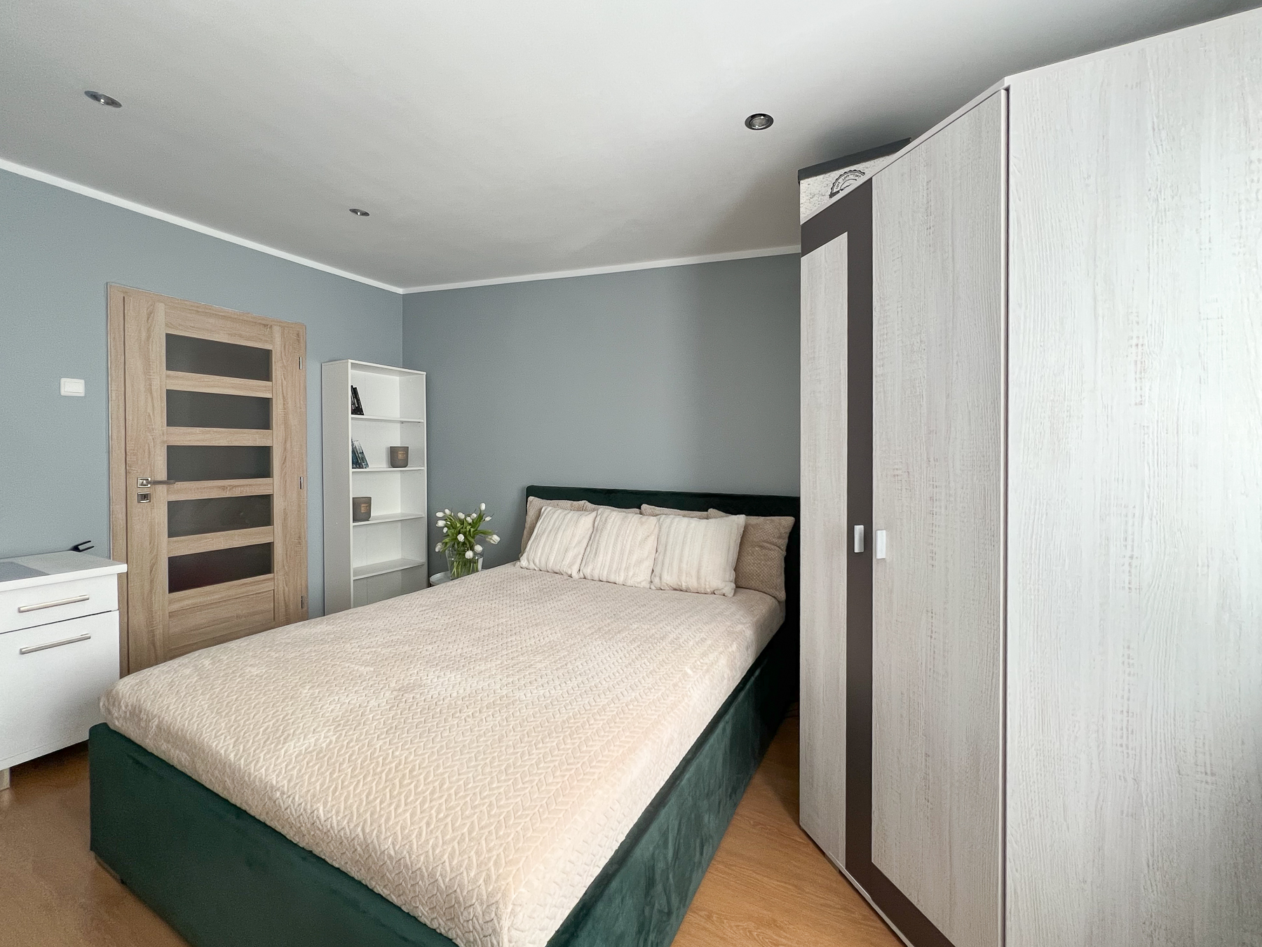 Sypialnia -przytulna i dobrze zorganizowana, z dużą szafą do przechowywania (pow. ok. 17 m2).