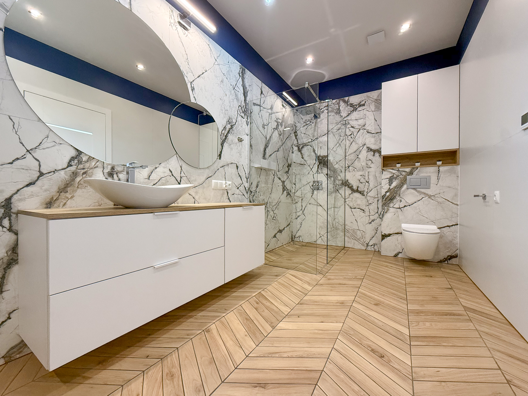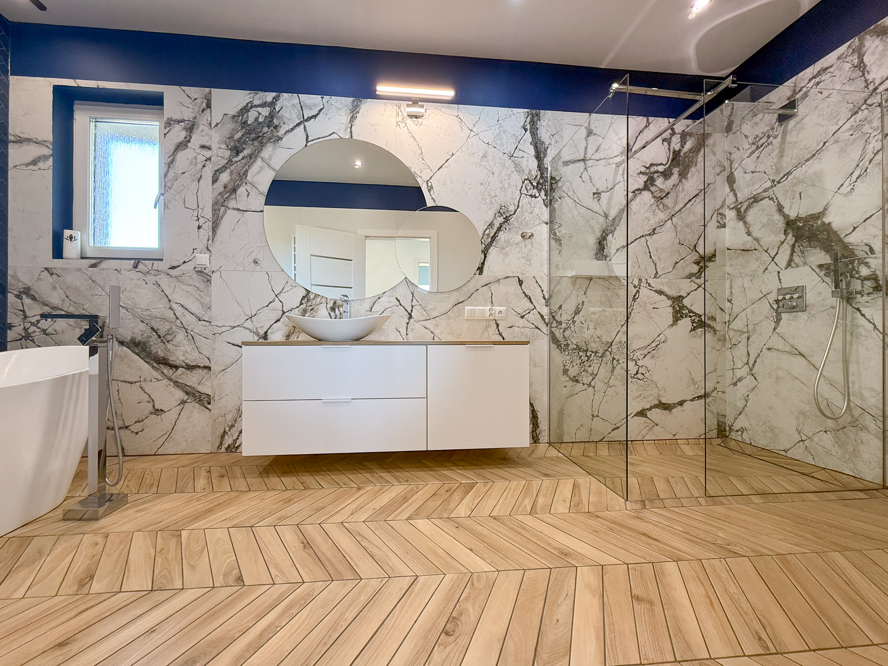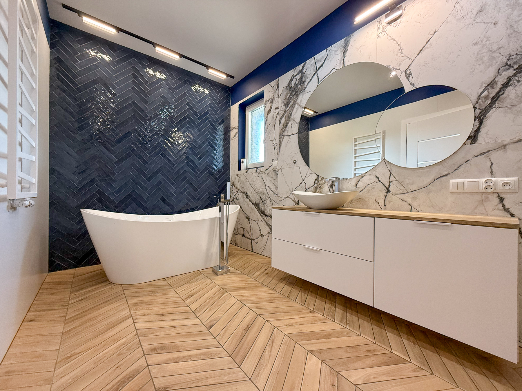 - komfortowa łazienka (ok. 10,70 m2) z dwiema opcjami kąpielowymi wolnostojącą wanną i prysznicem z odpływem liniowym, łazienka z oknem. Przestrzeń wygodna dla użytkowników,