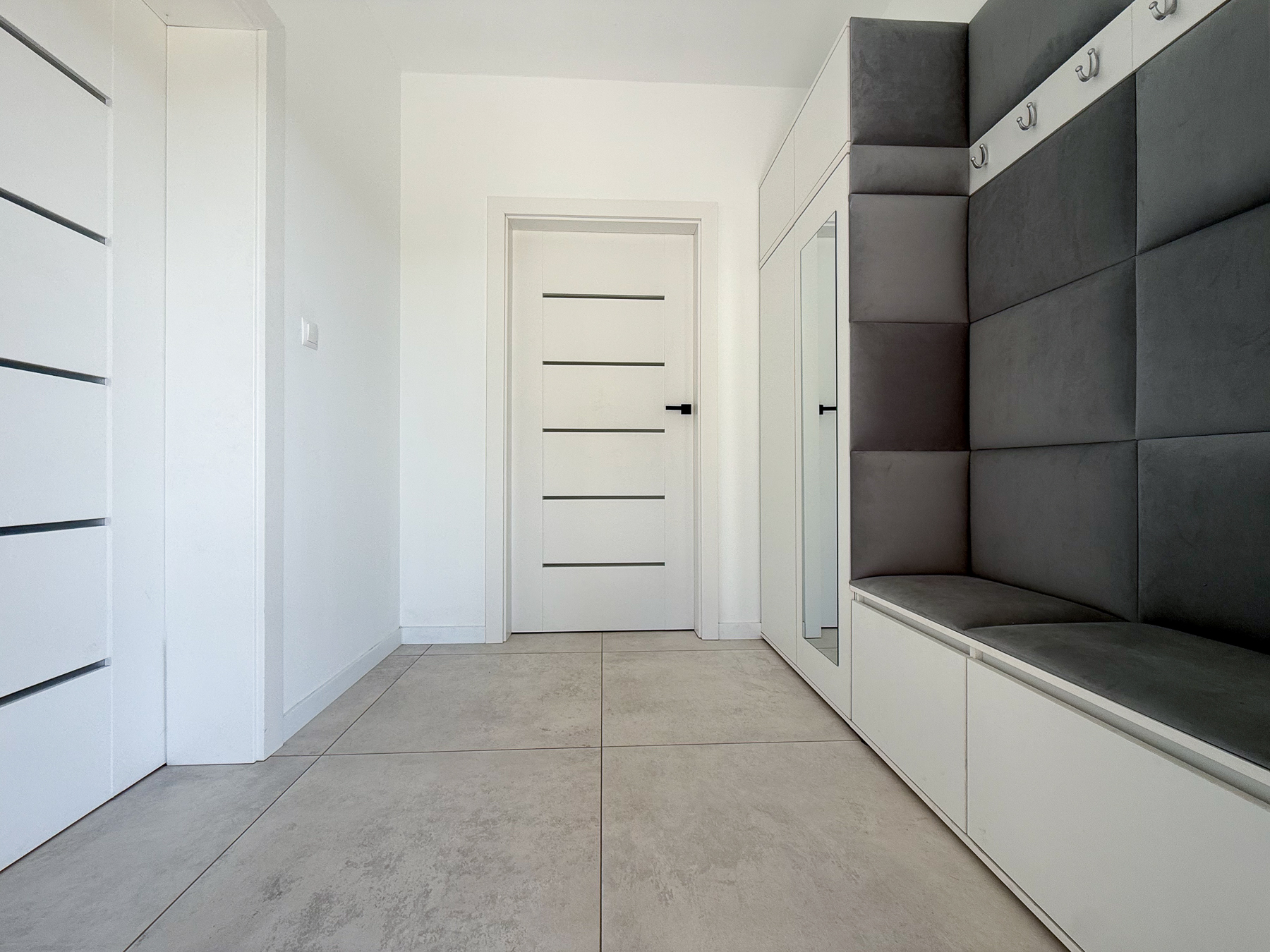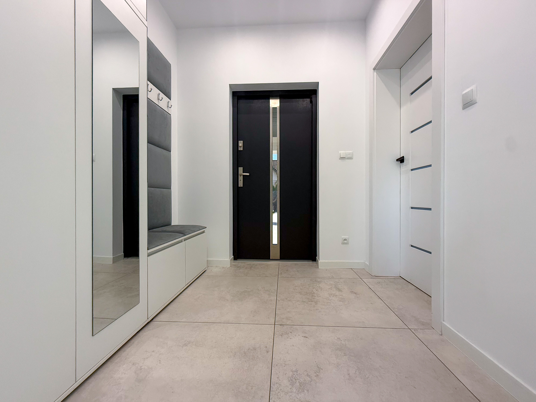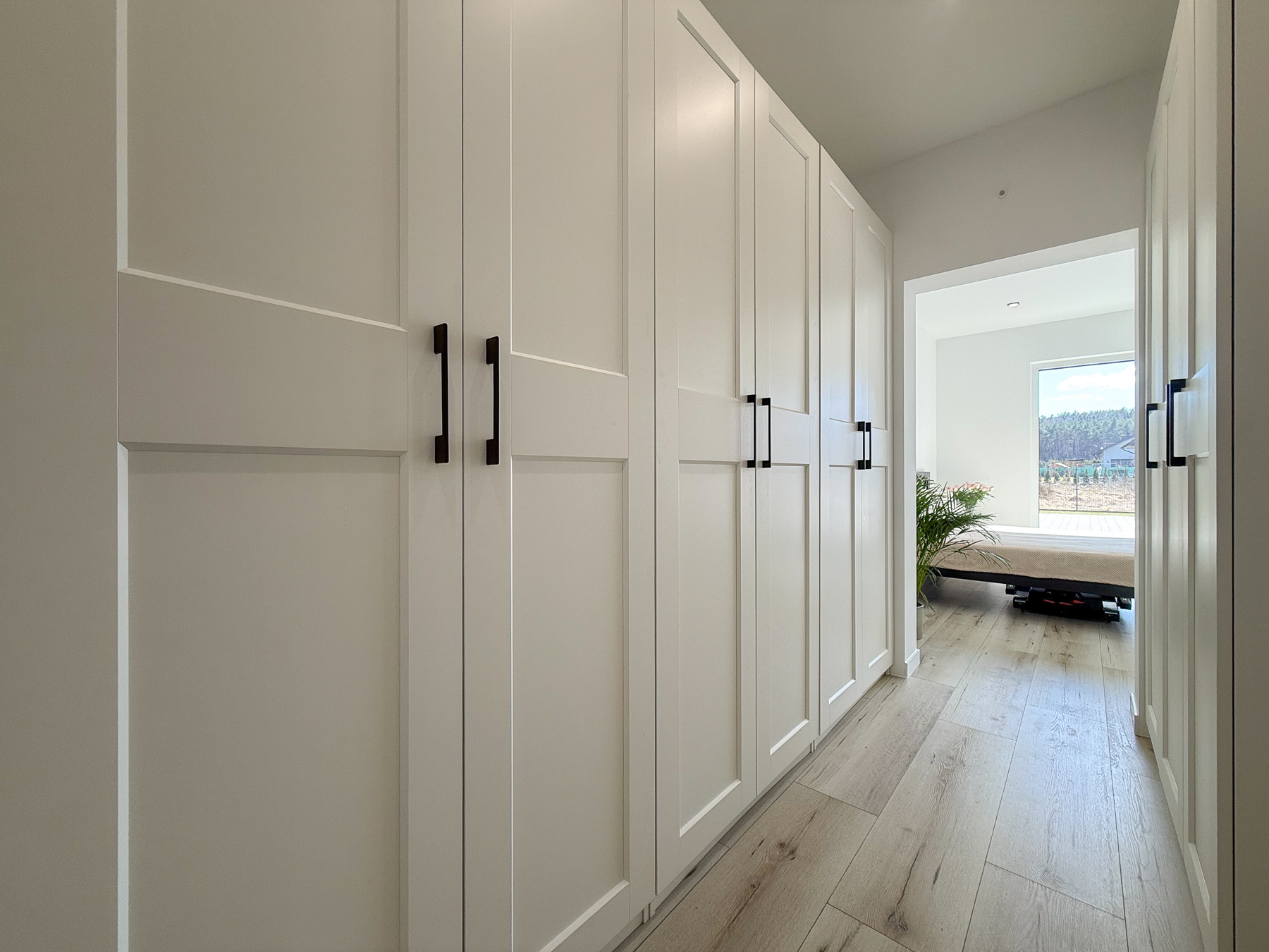 - przestronny hol, który spełnia zarówno funkcję komunikacyjną, jak i obszerną przestrzeń do przechowywania (szafa pod zabudowę),