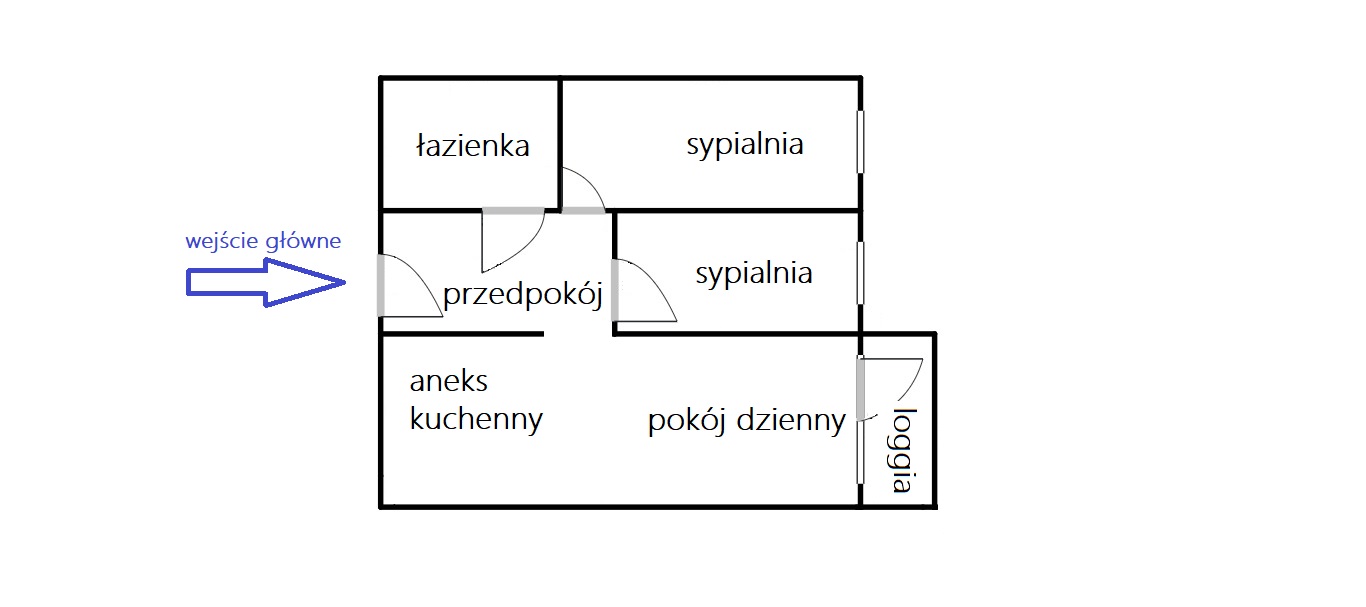 Każde z pomieszczeń ma niezależne wejście. W sypialniach duża wystawa okienna, z pokoju dziennego wyjście na loggię (pow. ok. 5 m2).