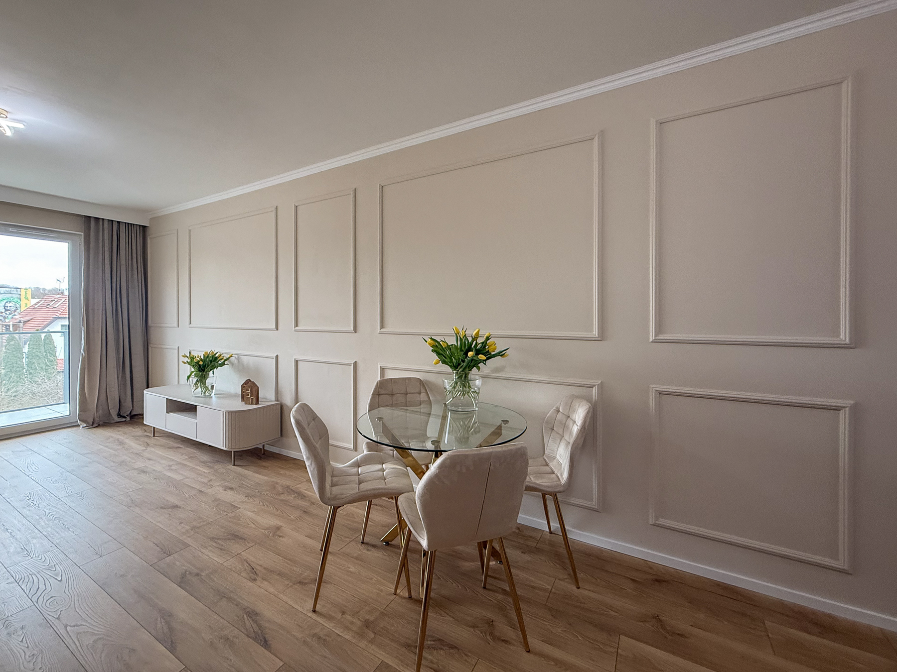 Do wynajęcia komfortowe mieszkanie o powierzchni 47,23 m², położone na 2. piętrze w nowoczesnym budynku z 2025 roku. Lokal świeżo wykończony w wysokim standardzie, z dbałością o detale i spójną, ponadczasową estetykę.
